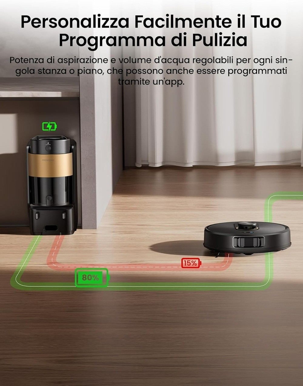 Robot Proscenic Q20 Plus. Il Q20 Plus combina tre funzioni in un unico passaggio Fattore di forma: Robot. Capacità base: 4 L. Batteria: Ioni di litio. Specifiche Tecniche. Rumorosità ridotta. Fino a 15 zone vietate.