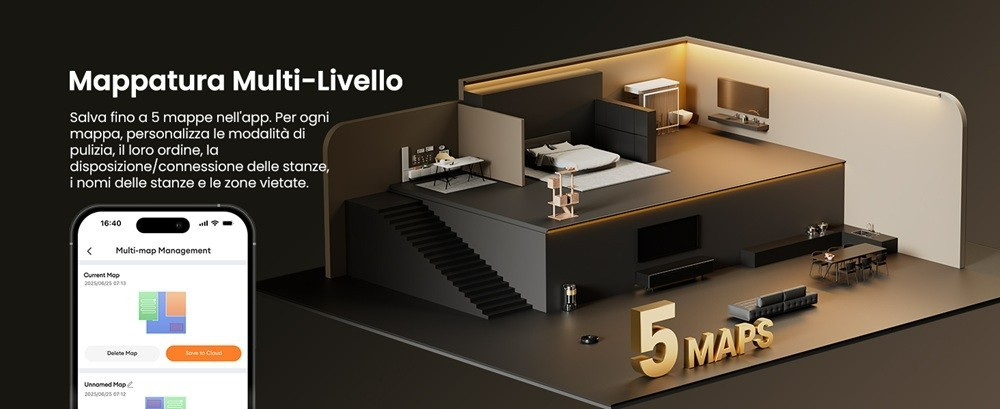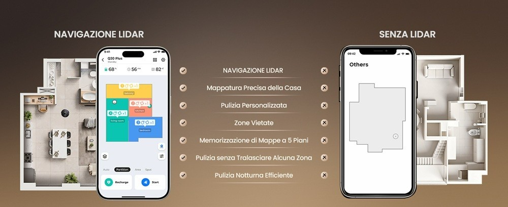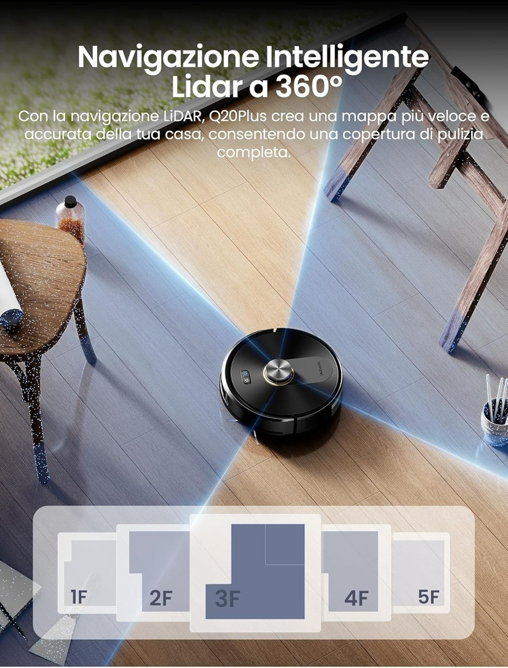 Proscenic Q20 Plus Robot Aspirapolvere Lavapavimenti 10000Pa mappatura laser