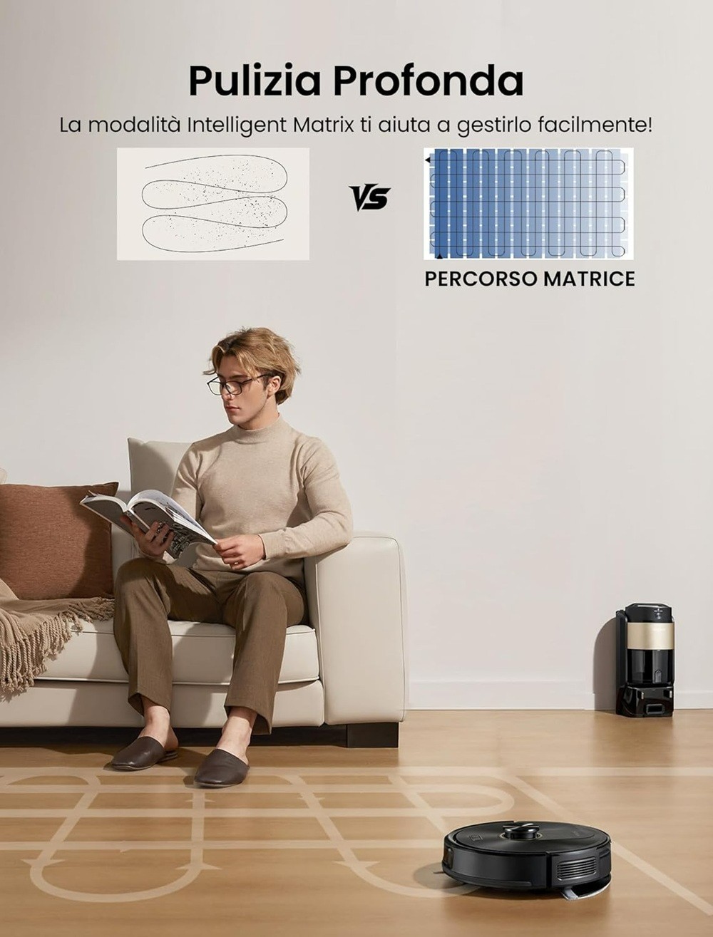 Caricabatterie, Filtro, Panno in microfibra, Spazzola per pavimenti