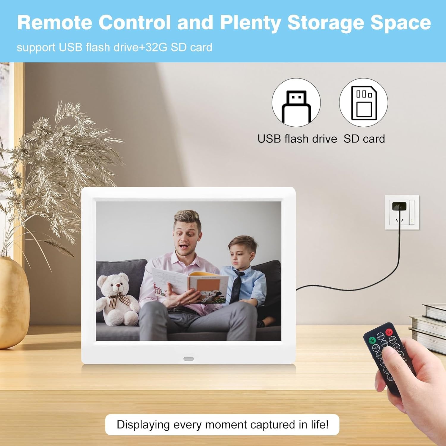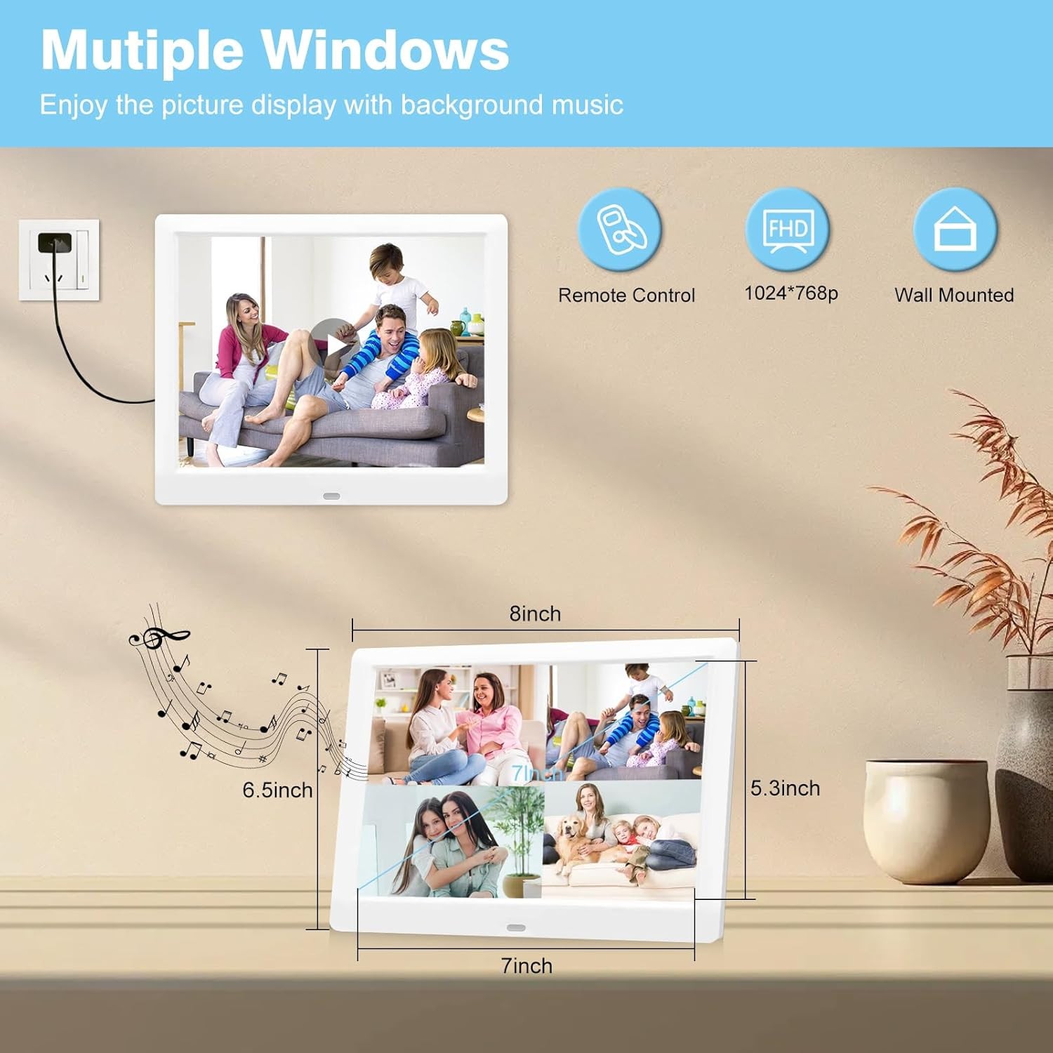 Marco Digital de Fotos y Video Blanco con Mando a Distancia Pantalla HD 1024