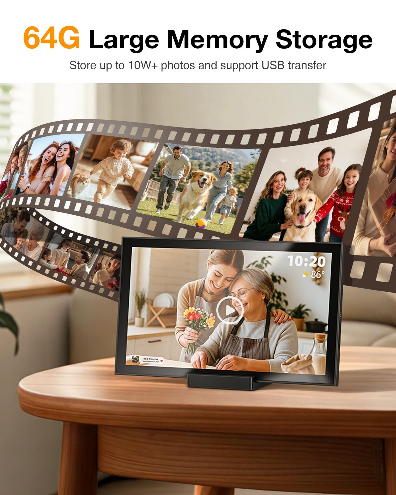 Marco de Fotos Digital 10.1" WiFi, Pantalla Táctil HD, 64GB, Aplicación Frameo, Regalo