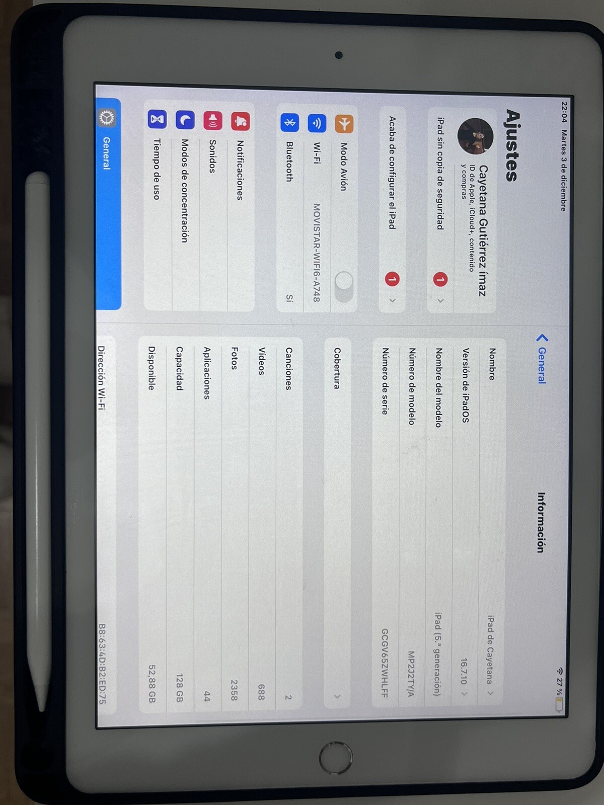 iPad 5ta Generación 128gb. iPad 5ª generación como nuevo, recién cambiada la pantalla. Incluye lápiz táctil y funda. Se entrega con caja. ENTREGA EN MANO