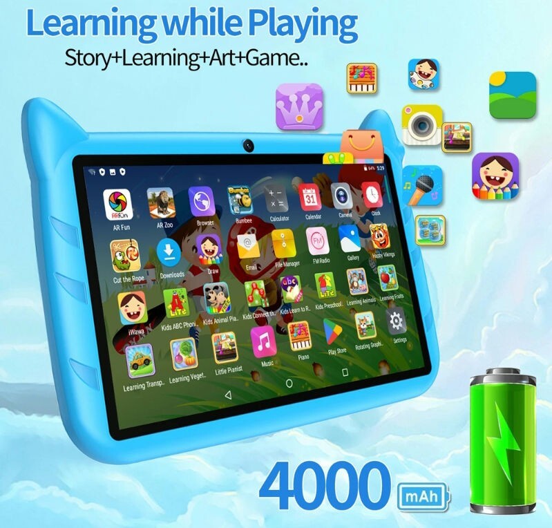 Tablet per bambini istruttivo e gioco 7 pollici Android 13 wifi 64 GB rom