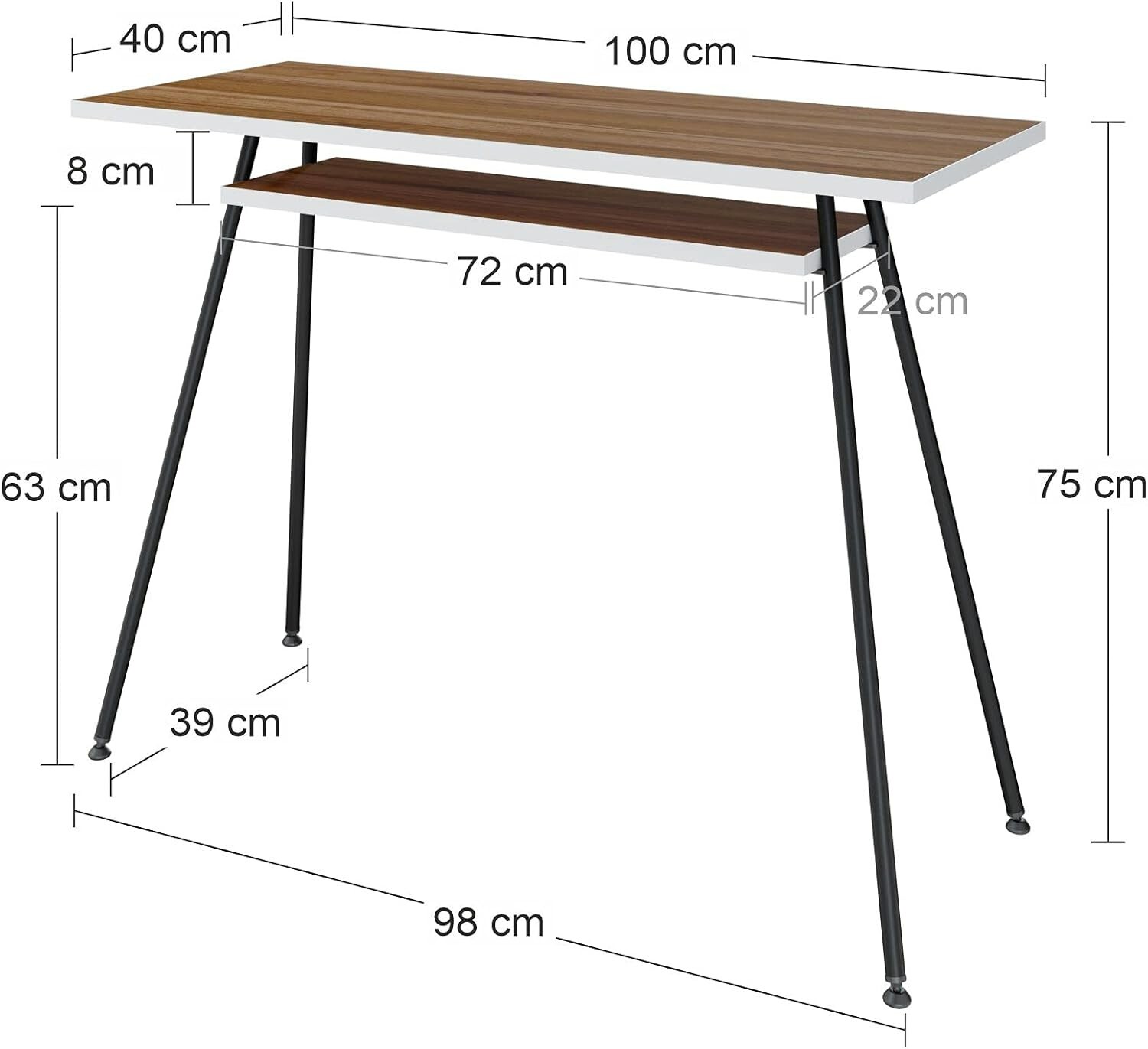 LEVIRA Escritorio 100x40 cm Negro Nogal - Mesa Home Office con Estante