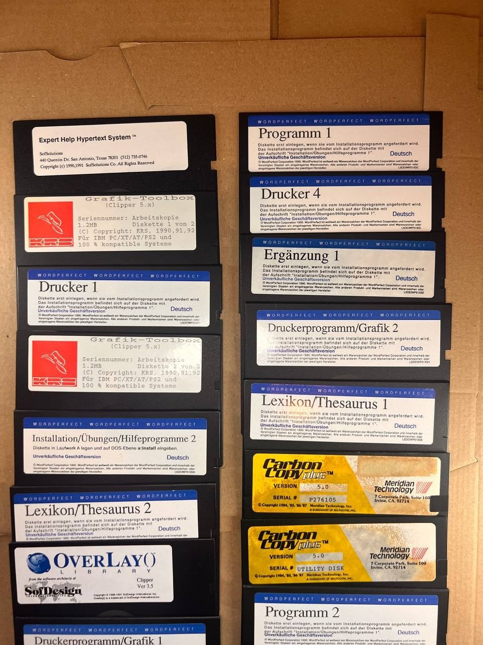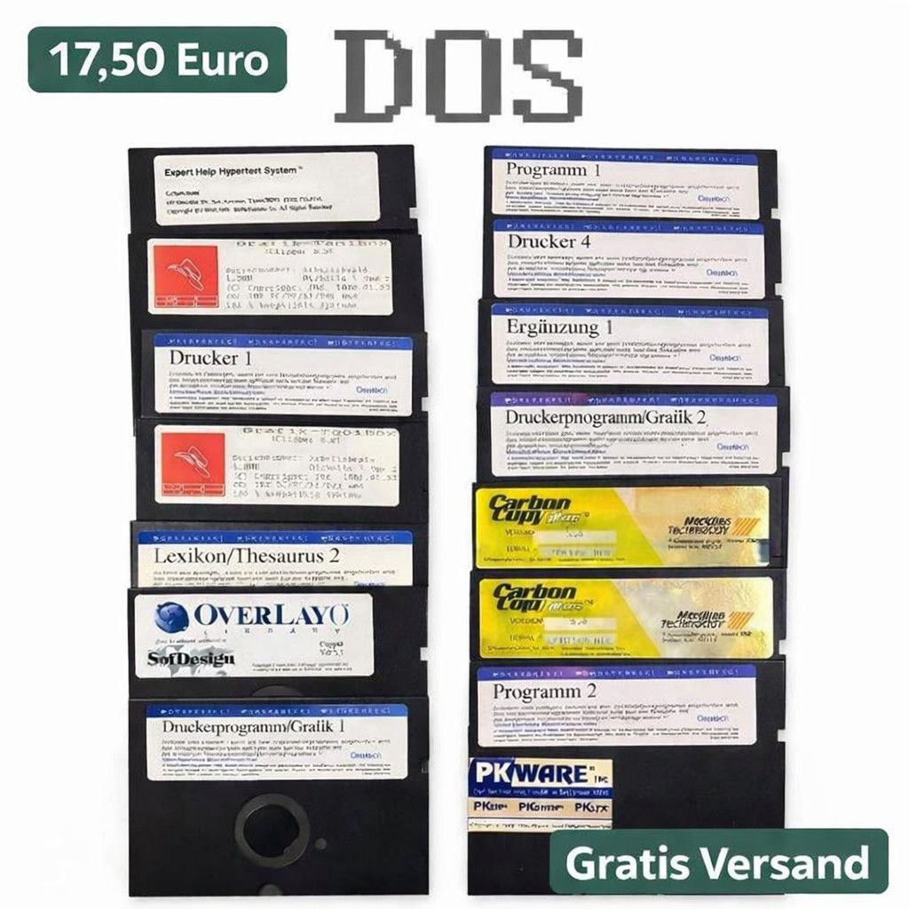 21 x 5.25" Disketten Konvolut WordPerfect PKZIP Carbon Copy Clipper Vintage +DOS